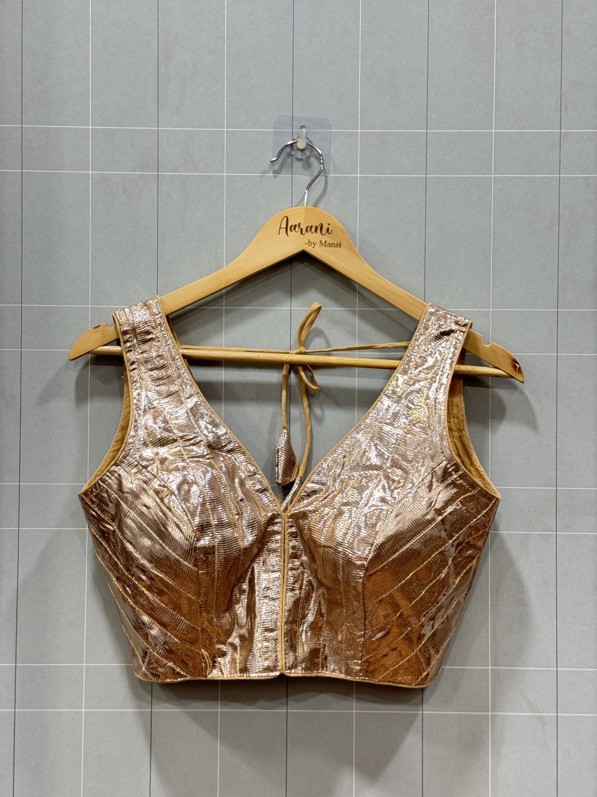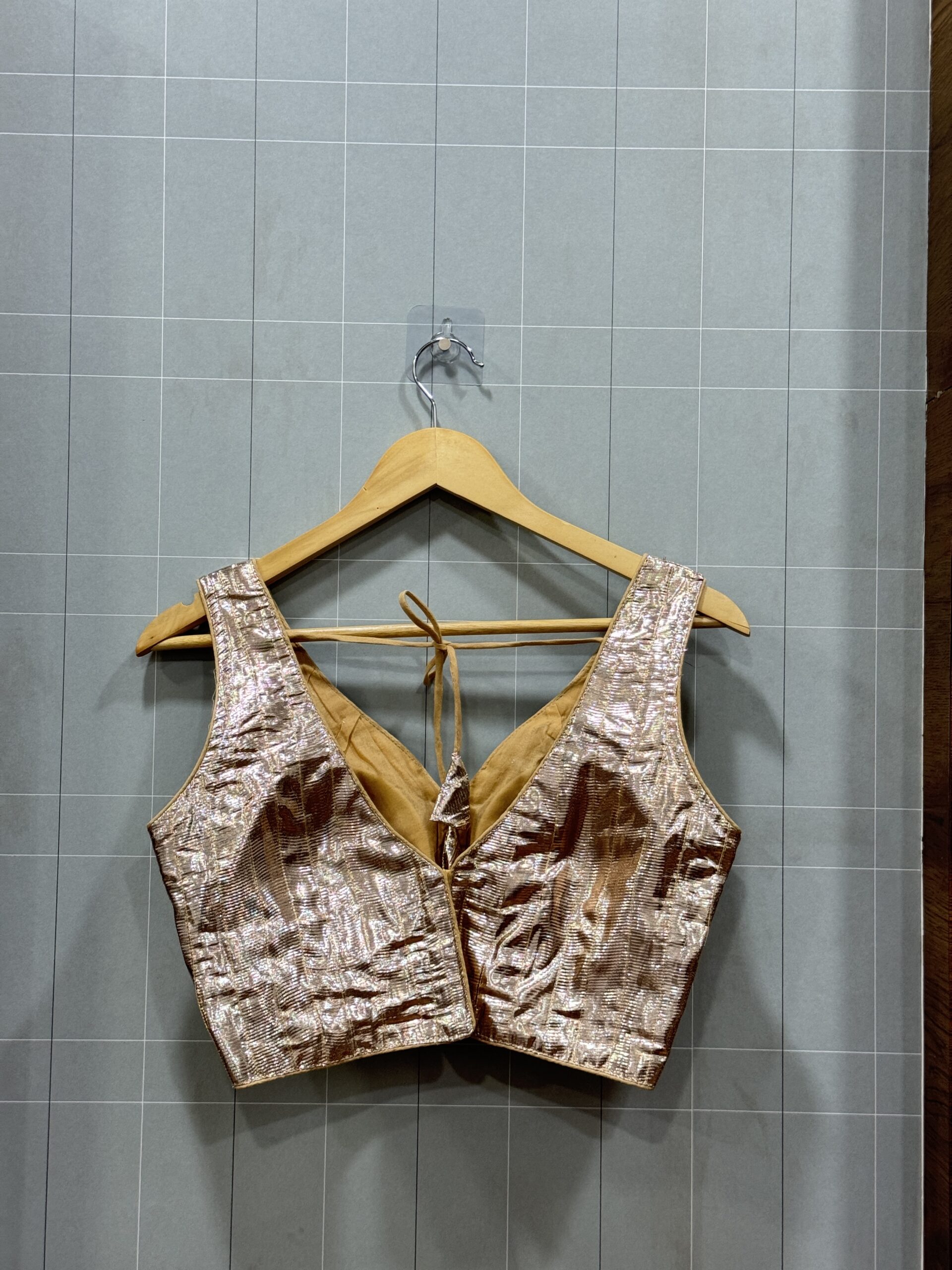 Add a touch of shimmer to your festive look with this versatile metallic blouse. Perfect for mixing & matching with any lehenga or saree.