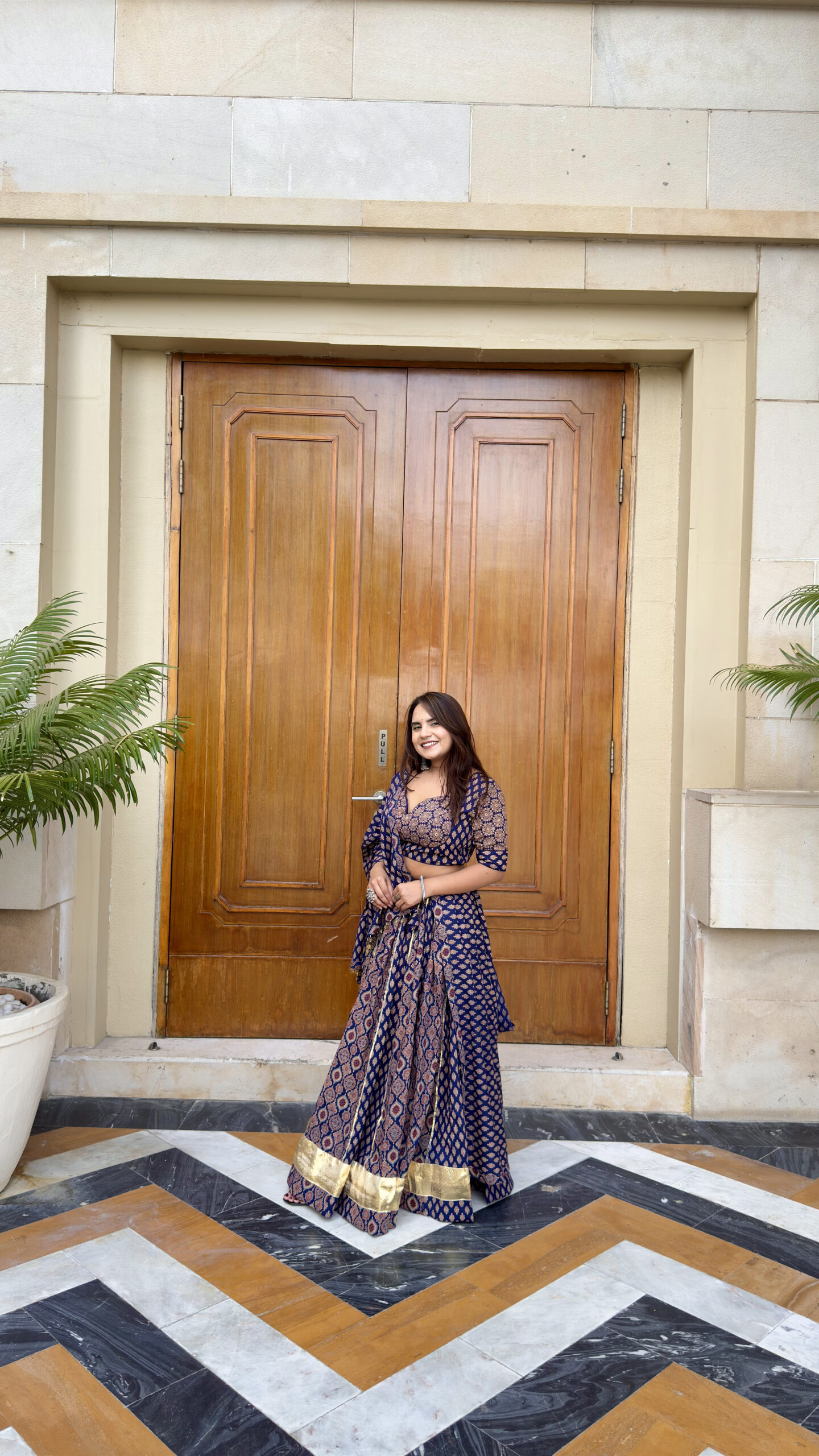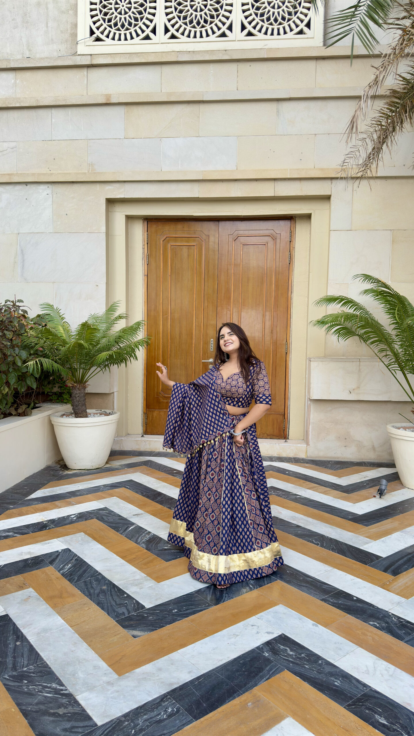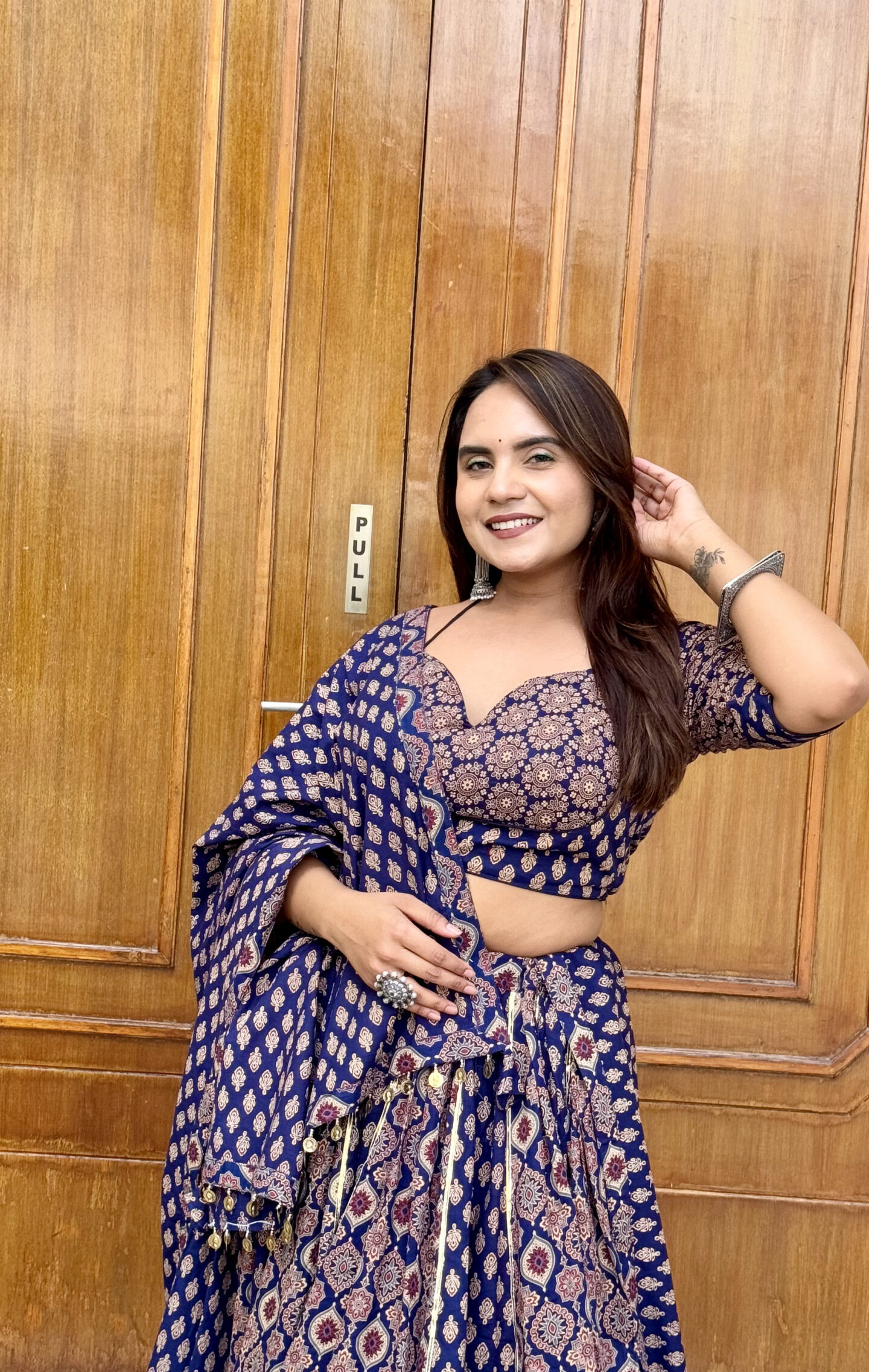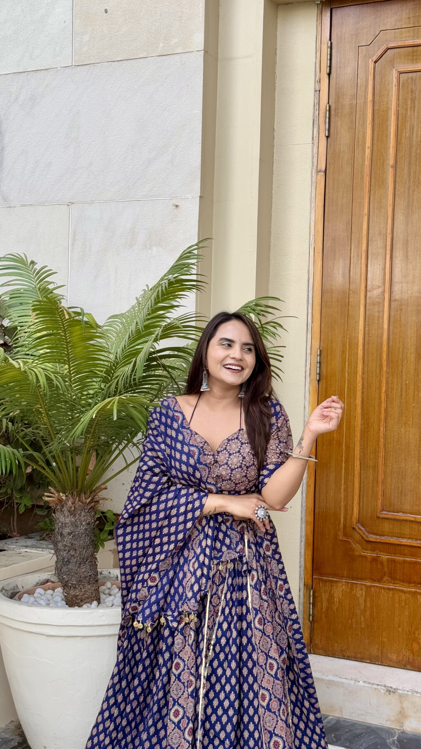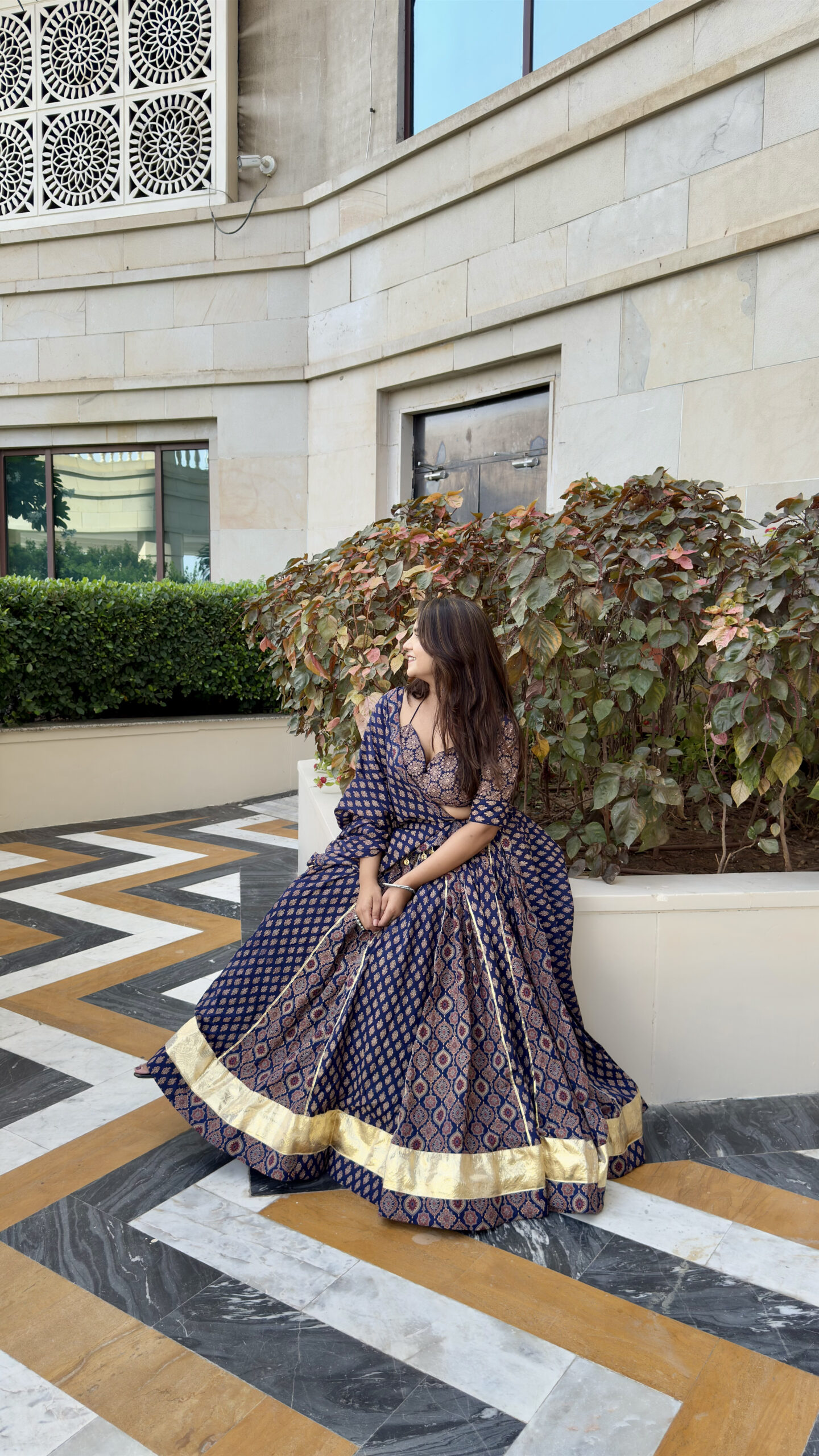 🖋️ Radiate festive elegance with our Neelpari Cotton Chaniya Choli in a stunning deep navy tone. Crafted from breathable pure cotton, this lehenga set is adorned with intricate traditional motifs and finished with a rich golden zari border. The flowing dupatta and twirl‑worthy flare make it a perfect pick for Navratri nights, Garba evenings, and traditional celebrations—bringing comfort and grace together in every move.